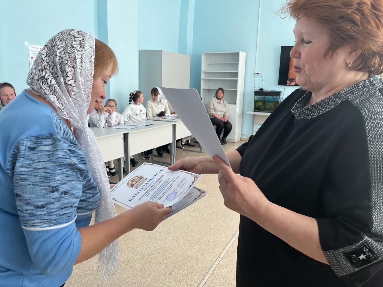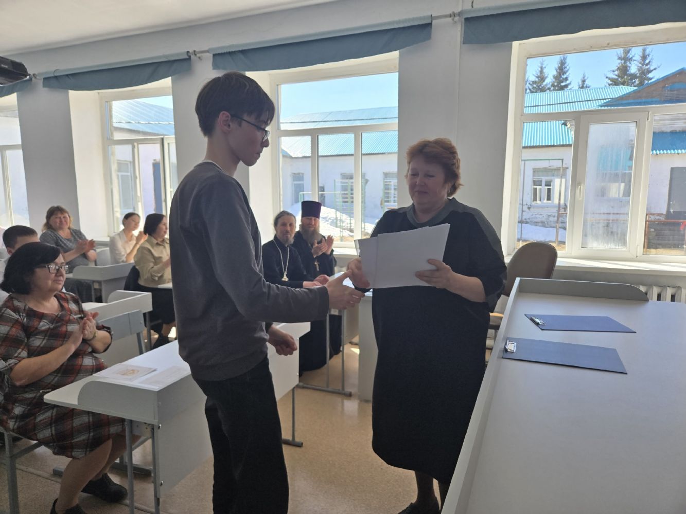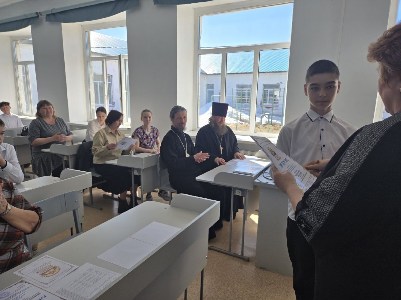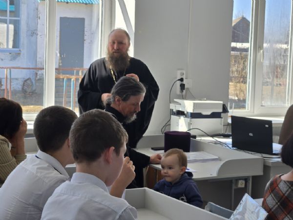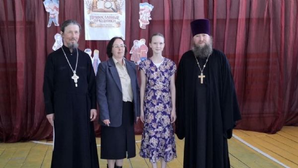 С напутственными словами к ребятам обратились директор Усолинской СОШ Римма Алексеевна Краснова, настоятель Свято‑Духовского храма с. Усола иерей Александр Малинов и настоятель храма Владимирской иконы Божией Матери с. Владимрское иерей Алексий Васюткин.