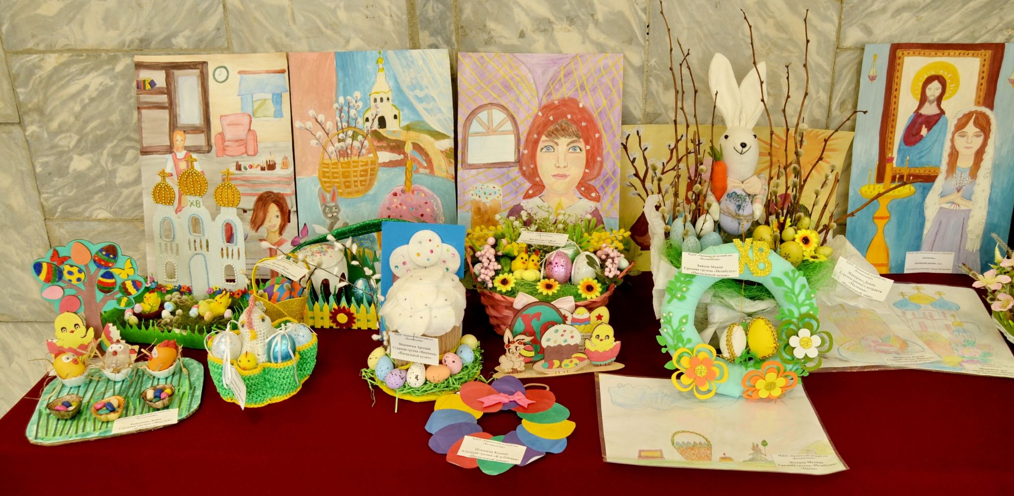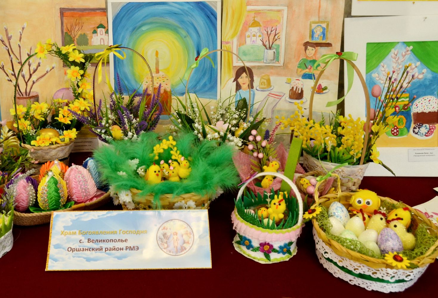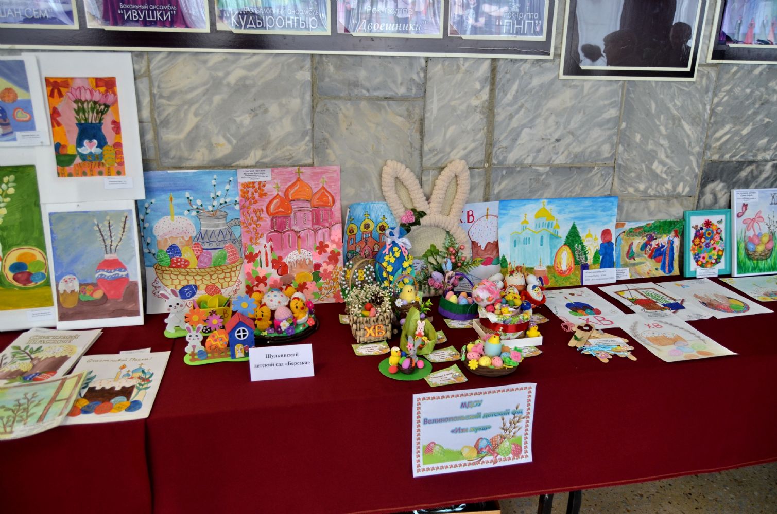 После праздничной Литургии в храме Рождества Иоанна Предтечи все желающие собрались в районном Центре культуры и досуга. В фойе была организована выставка детских творческих работ на пасхальную тему. Настроение посетителям создавали участники объединения «Аниматоры» Центра детского творчества им. Г.С. Чесноковой.