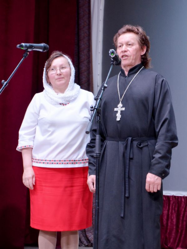 Заместитель главы администрации Оршанского района Валентина Шабалина и благочинный Оршанского церковного округа, настоятель Предтеченского храма протоиерей Димитрий Вылекжанин поздравили со сцены всех со светлым праздником Воскресения Христова.