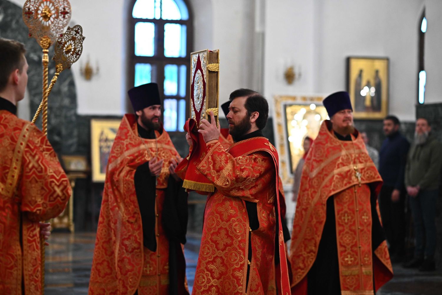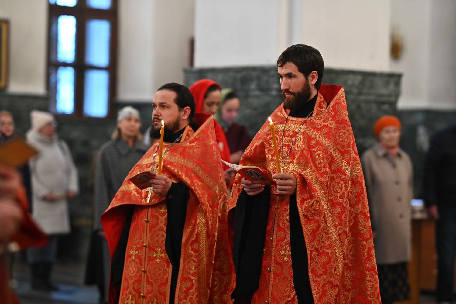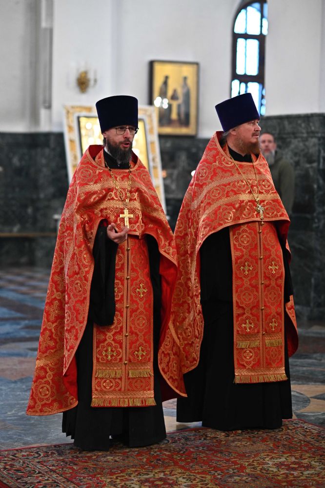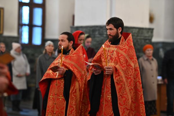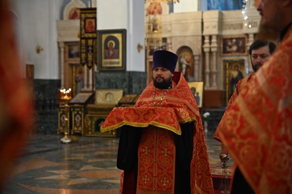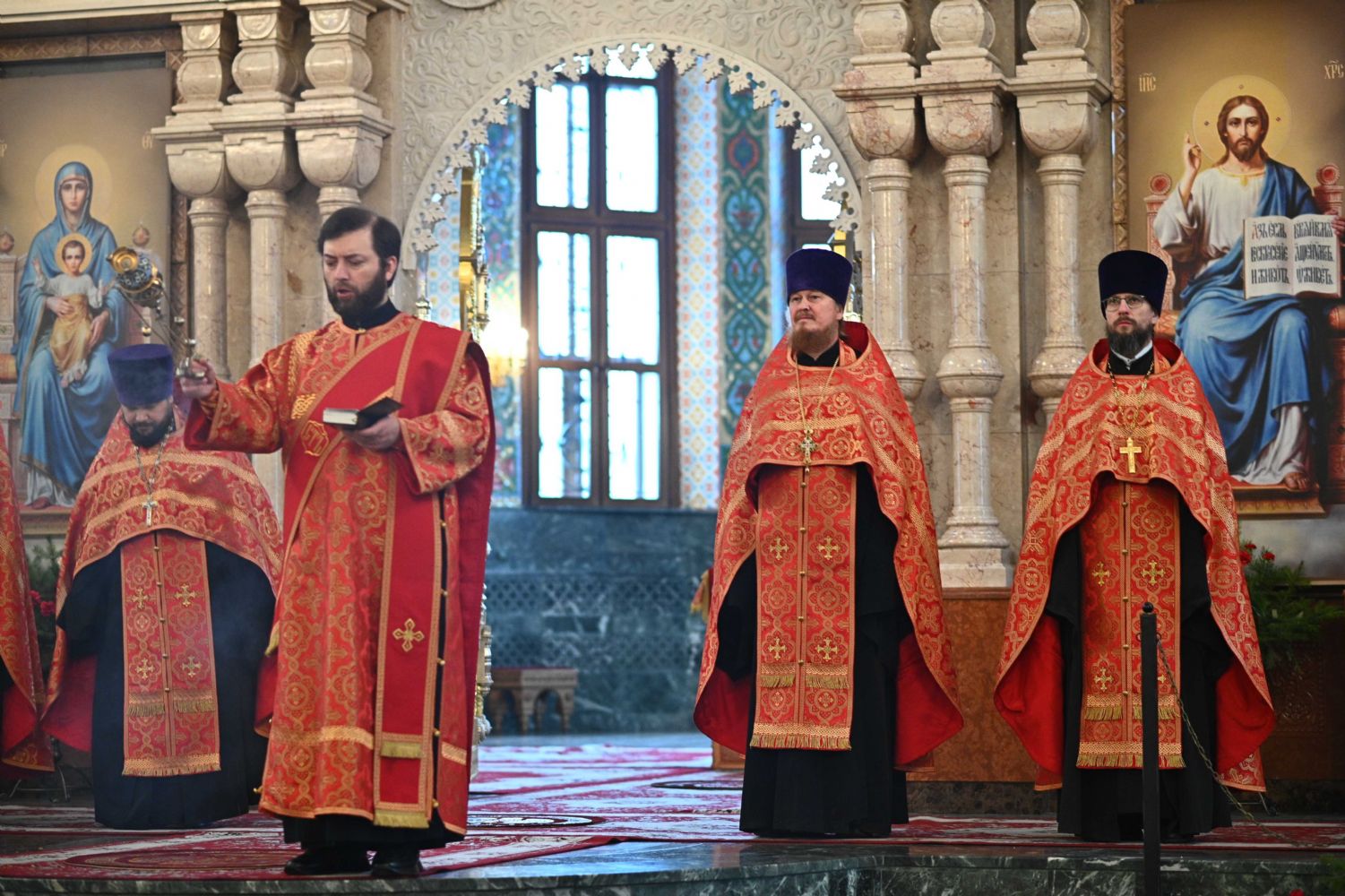 Владыке сослужили ключарь кафедрального собора протоиерей Сергий Поглазов, клирики собора иереи Никифор Захаров, Евгений Самойлов, Иоанн Милютин и диакон Артемий Бобоч. Песнопения исполнял архиерейский хор «Благовест» под управлением регента Татьяны Черновой.