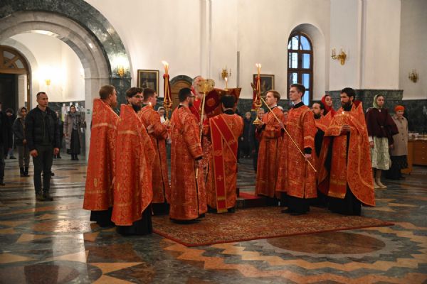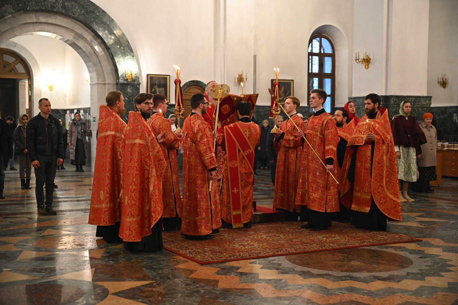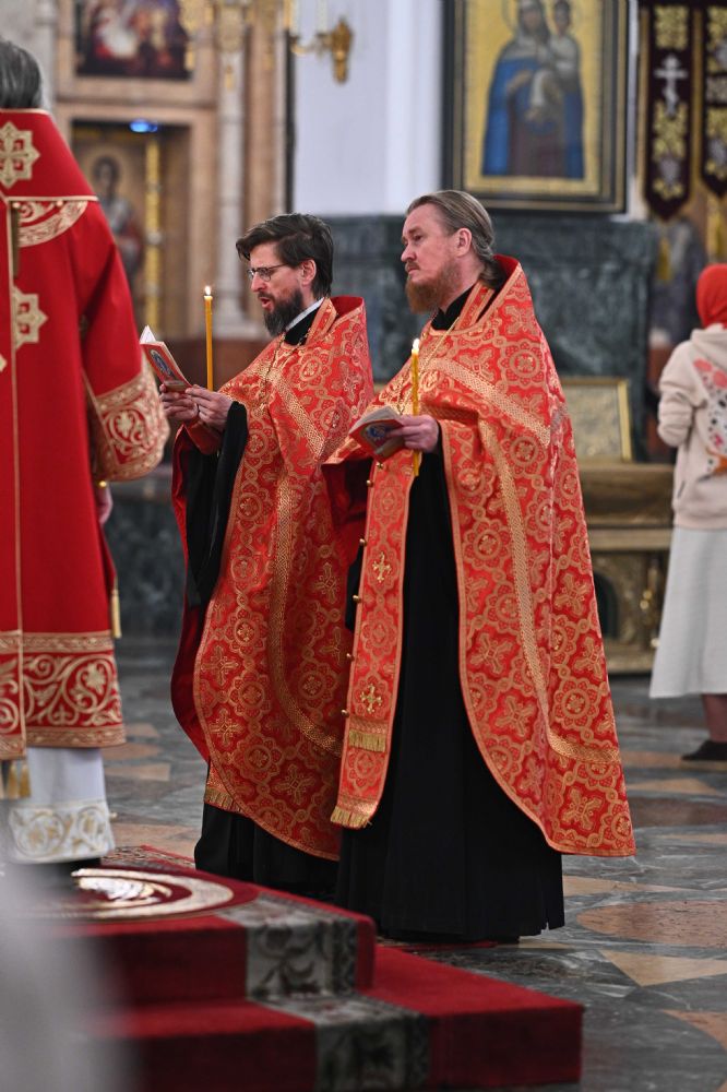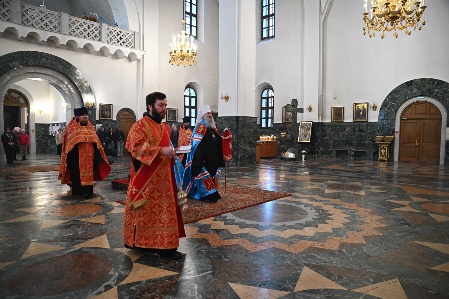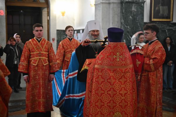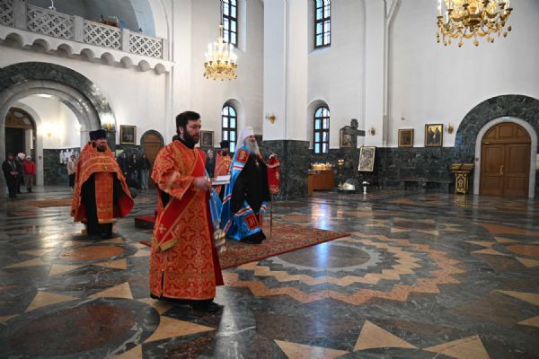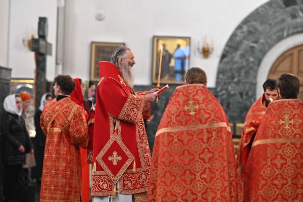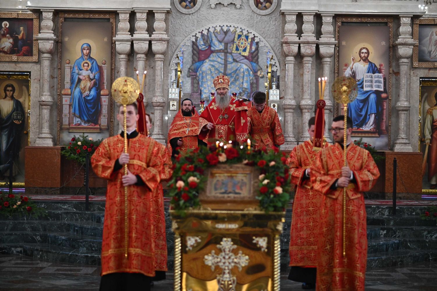 Владыке сослужили ключарь кафедрального собора протоиерей Сергий Поглазов, клирики собора иереи Никифор Захаров, Евгений Самойлов, Иоанн Милютин и диакон Артемий Бобоч. Песнопения исполнял архиерейский хор «Благовест» под управлением регента Татьяны Черновой.