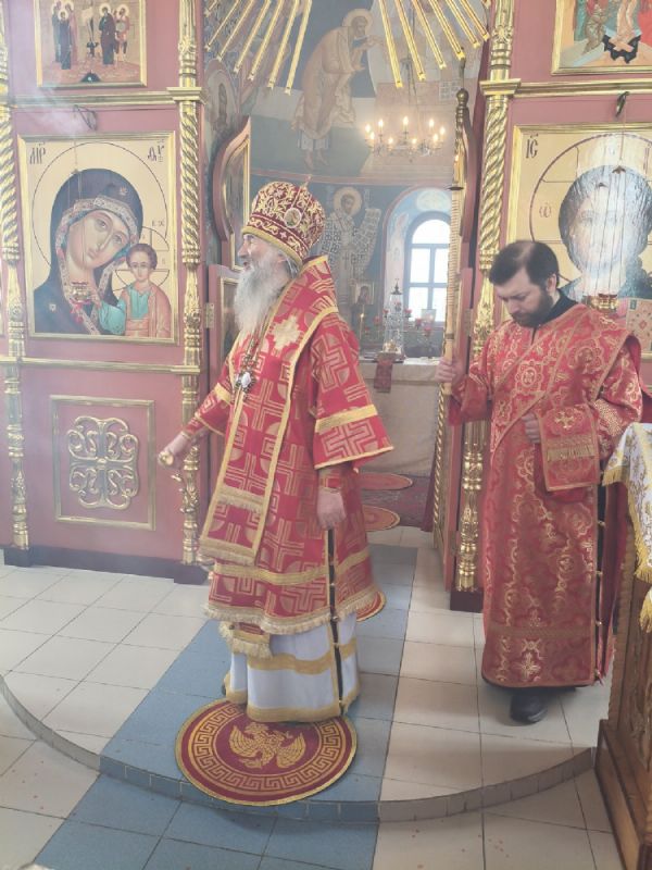 Владыке сослужили клирик храма Рождества Пресвятой Богородицы с. Семеновка иерей Сергий Асланов и клирик Благовещенского кафедрального собора диакон Артемий Бобоч. Песнопения исполнял хор «Благовест» под управлением Татьяны Черновой.