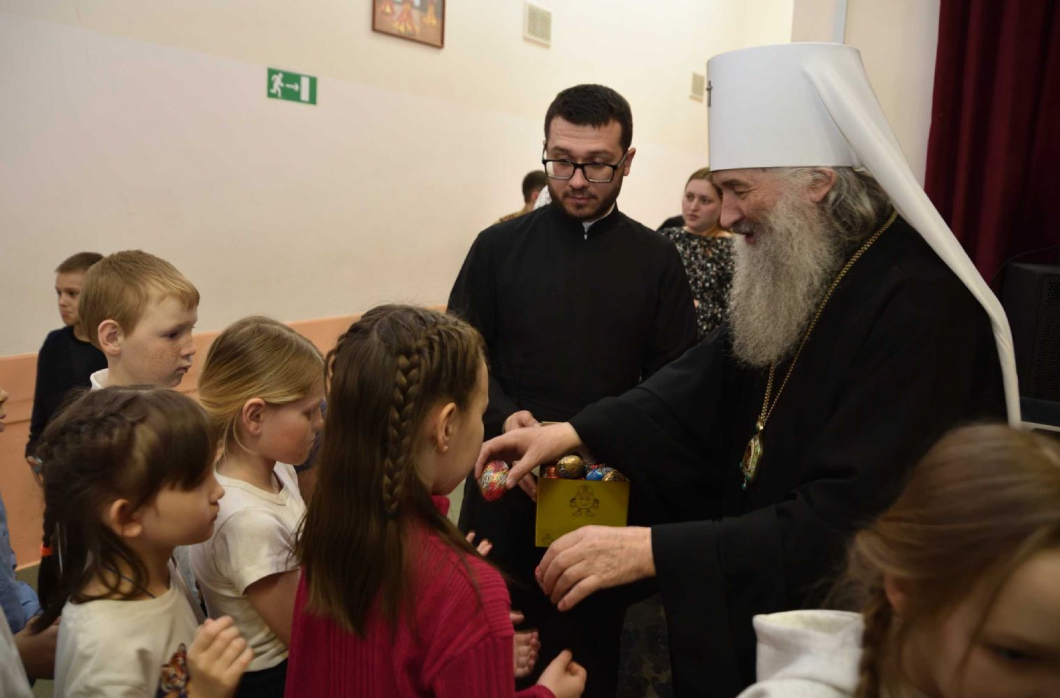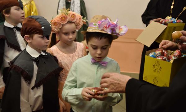 Каждый из нас, дорогие мои дети, братья и сестры, должен в своей жизни пребывать в этой любви Христовой друг к другу. И Господь нас учит любовью покрывать недостатки друг друга, Он учит нас, чтобы мы всегда жили в мире. Поругался ли с кем? Пожалуйста, перед тем как ложиться спать, примиритесь. Вот, на пасхальном утреннике одна из воскресных школ показала сказку, где говорится: есть четыре волшебных слова, которые спасают всякого человека: «Да, я виноват, простите меня». Эти четыре слова в одно мгновение в нашем сердце поселяют мир, спокойствие и радость. Желаю нам всем взрослым и детям эти четыре слова никогда не забывать, чтобы всегда мы примирялись друг с другом и жили в радости и в мире».