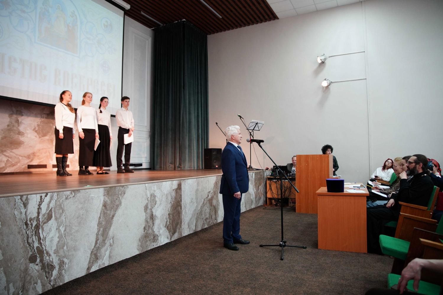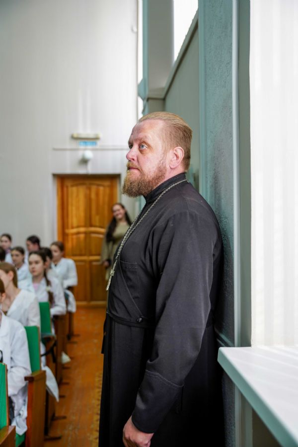 По традиции, фестиваль открылся совместным исполнением тропаря Пасхи. С приветственными словами к собравшимся обратились секретарь Йошкар-Олинского епархиального управления иерей Димитрий Дьяков, окормляющий данное учебное заведение, и директор медколледжа Леонид Рыжков.