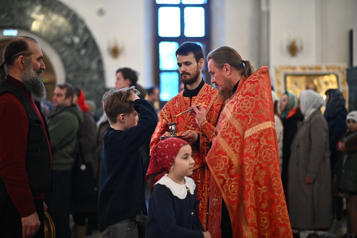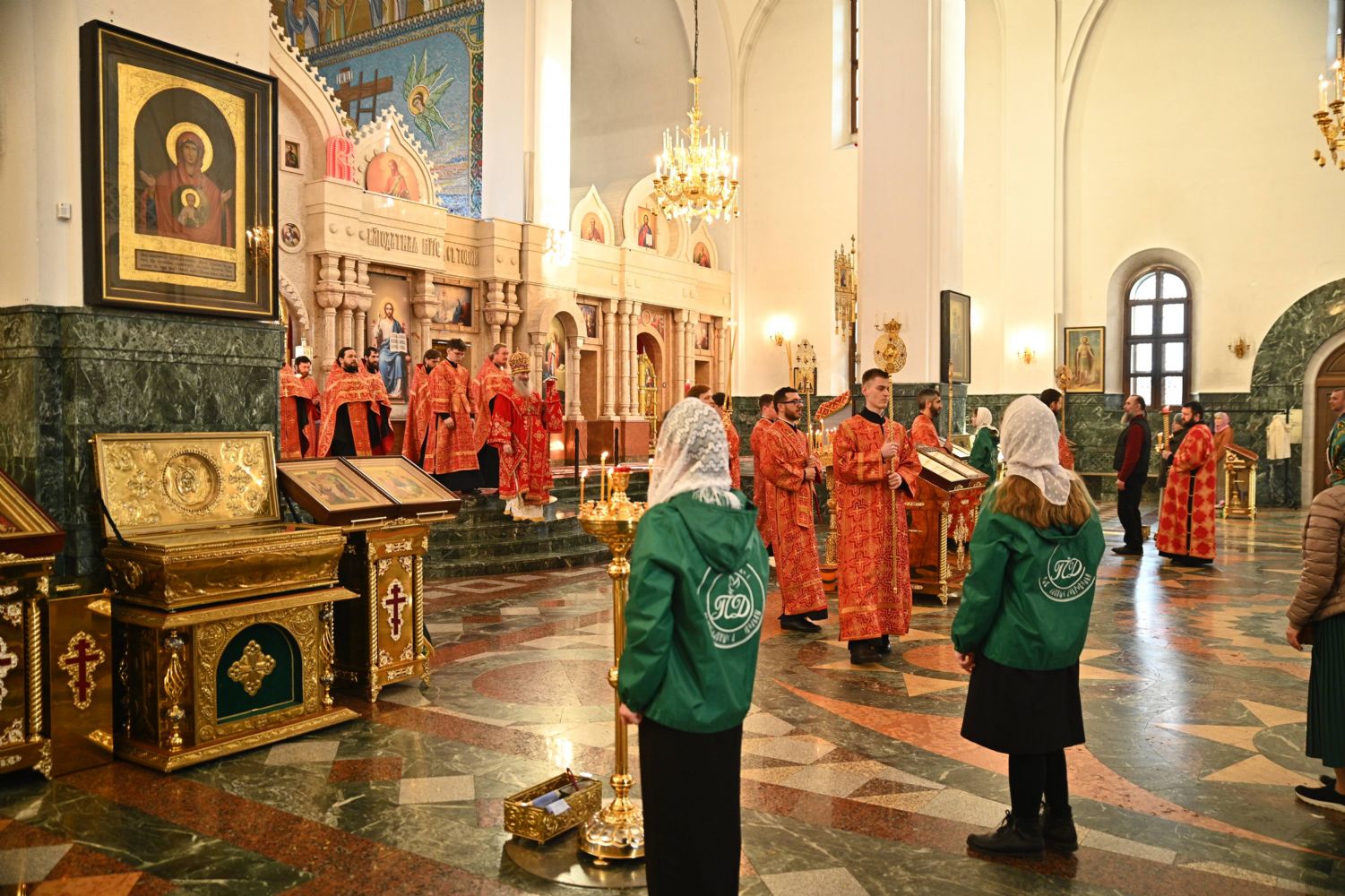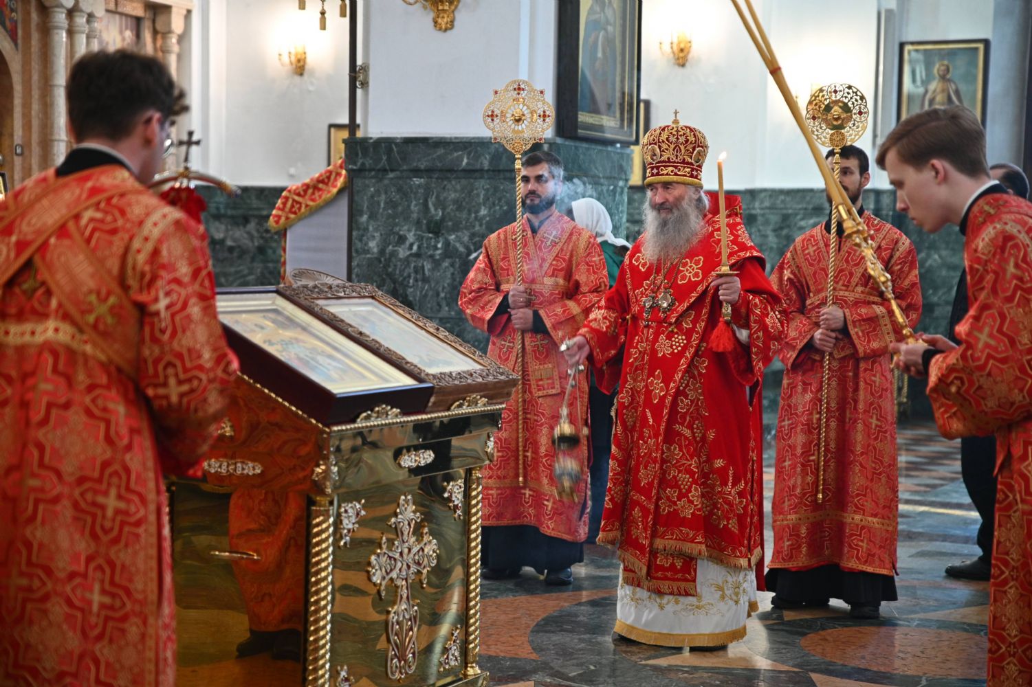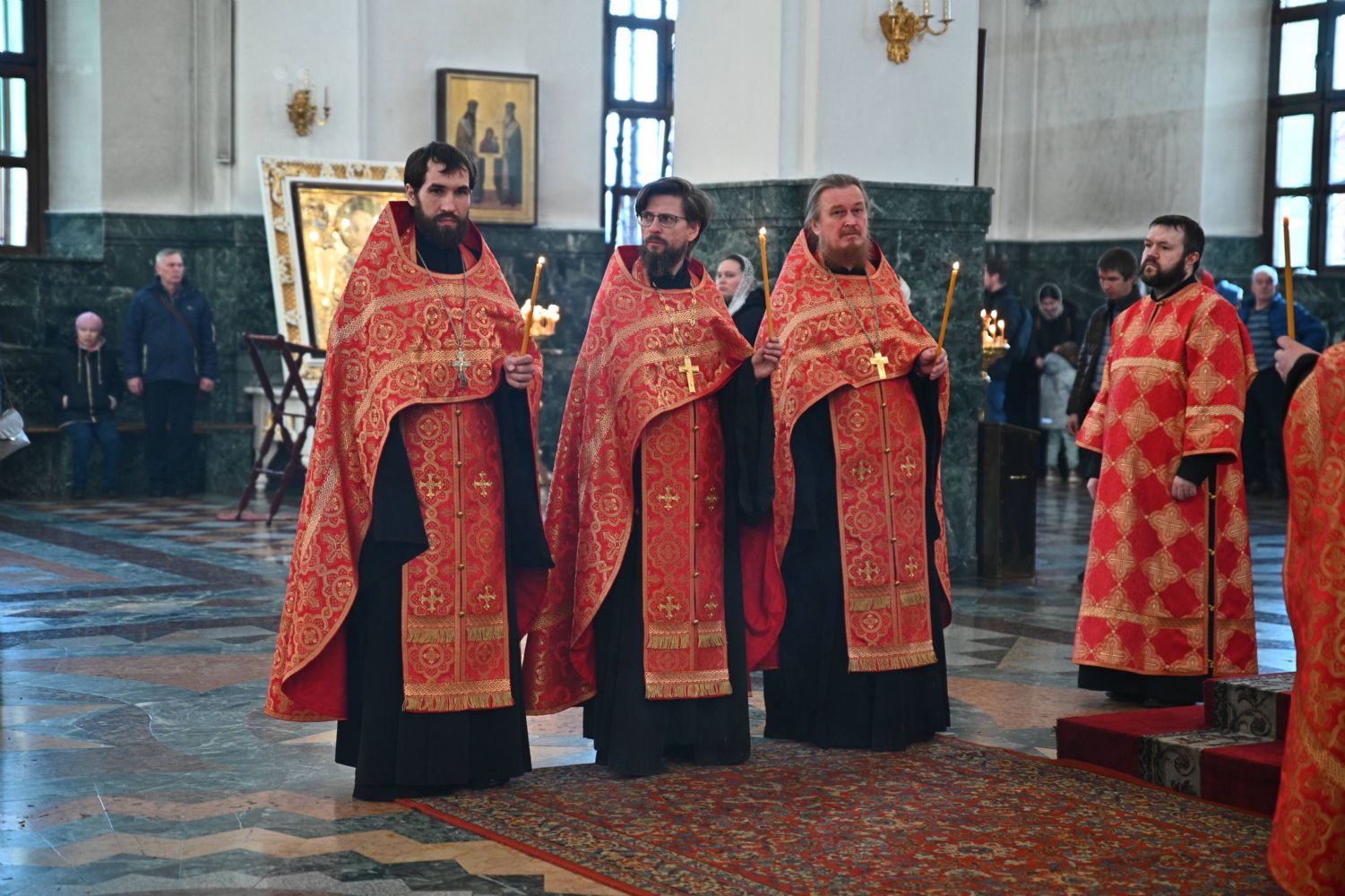 Владыке сослужили ключарь собора протоиерей Сергий Поглазов, клирики собора иереи Никифор Захаров, Евгений Самойлов, Александр Староверов, Иоанн Милютин и диакон Артемий Бобоч. Песнопения исполняли старший и младший составы архиерейского хора «Благовест» под управлением регентов Татьяны Черновой и Надежды Поздеевой.