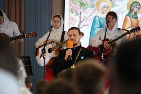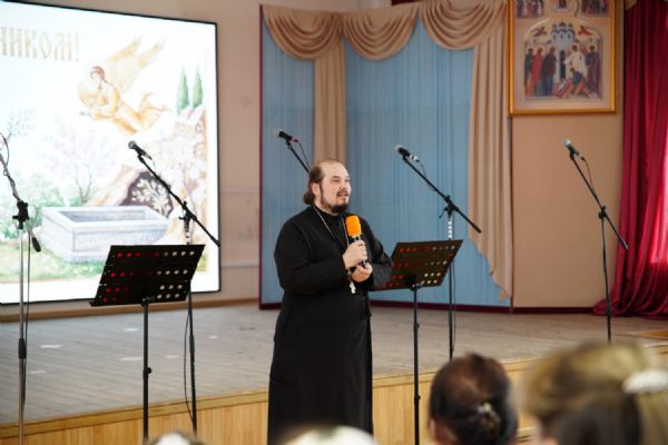 С поздравительным словом к присутствующим обратился духовник воскресной школы имени священномученика Леонида иерей Александр Староверов. Он поблагодарил членов Союза православных женщин, активно ведущих работу по борьбе со сквернословием, которое, к сожалению, захватывает наших детей начиная с дошкольного и школьного возраста.