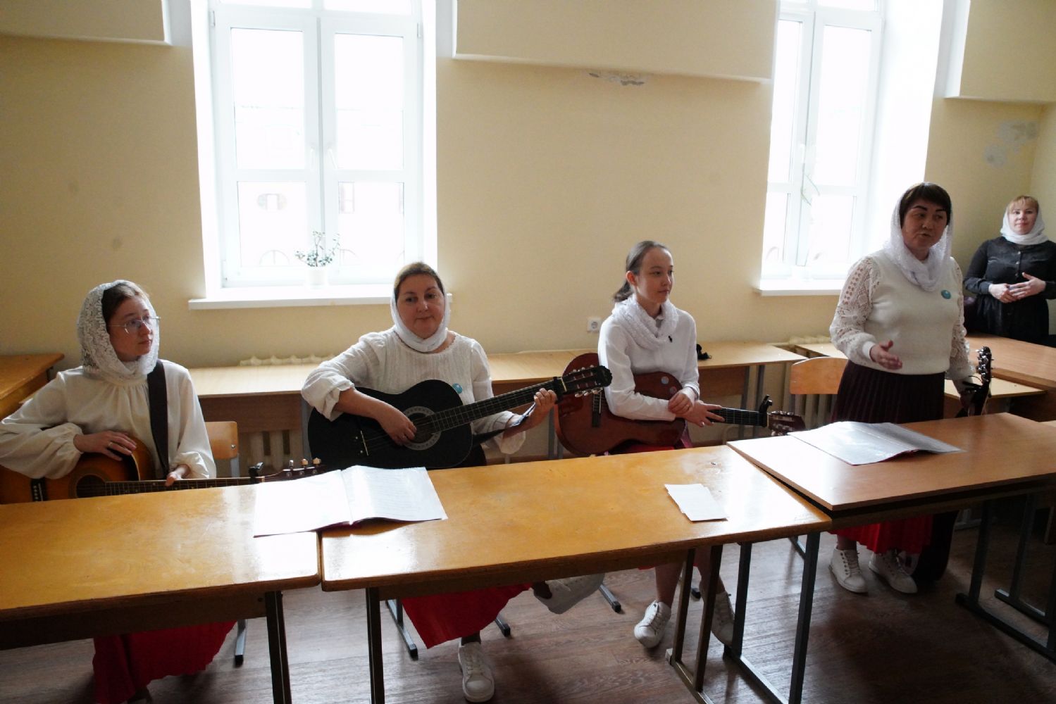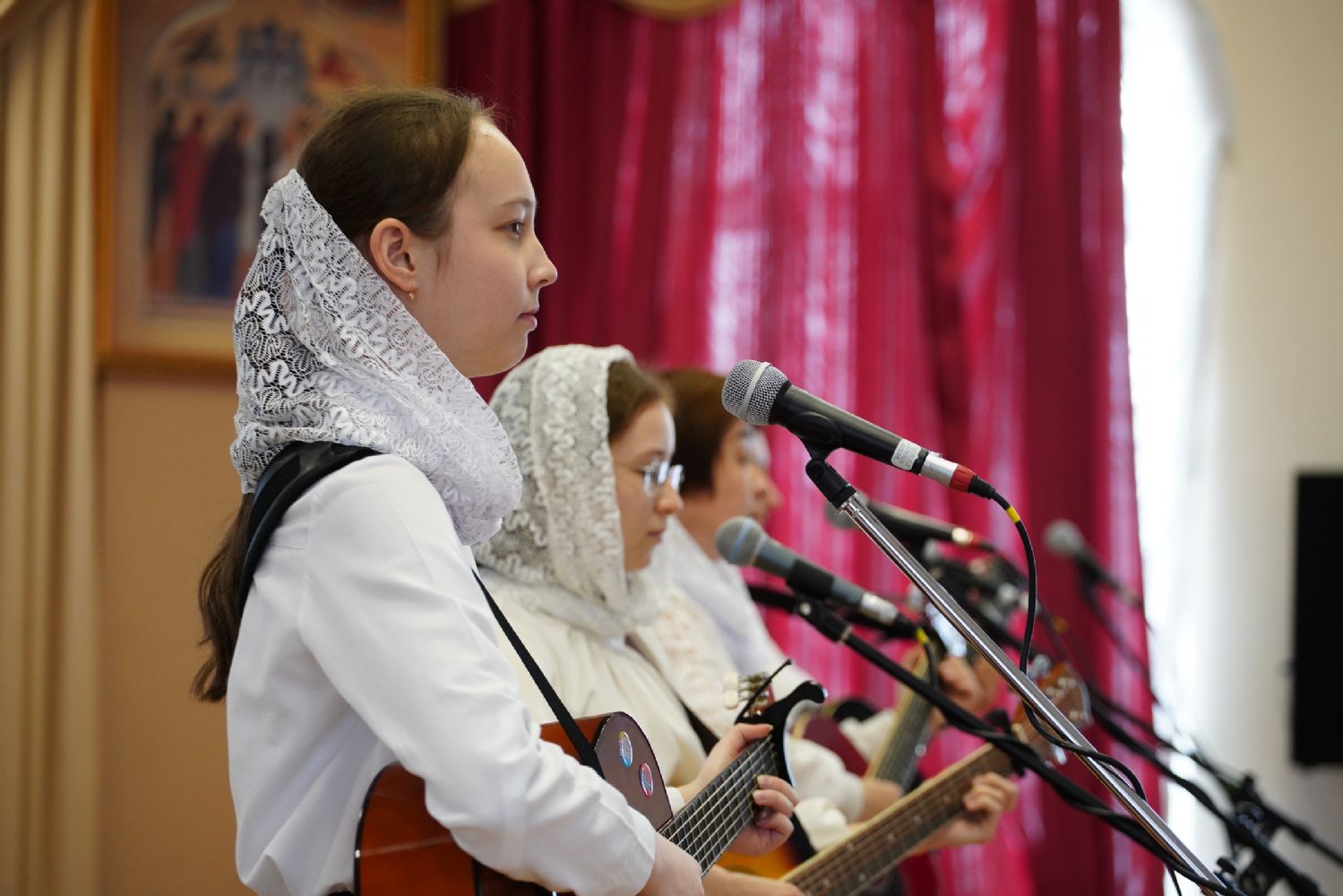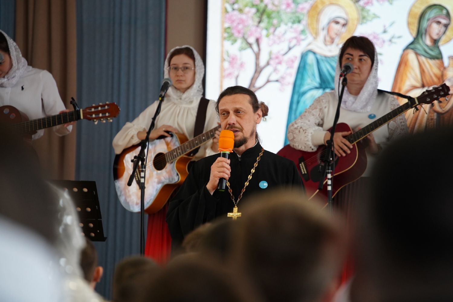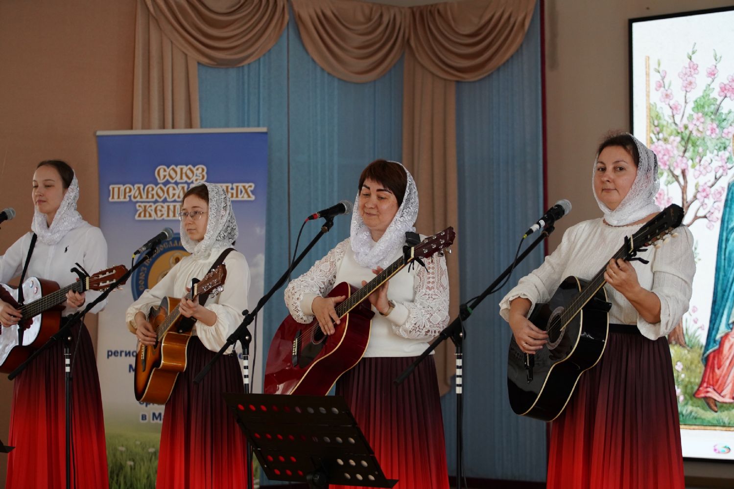 Ансамбль гитаристов «Серебряные струны» создал особую атмосферу, исполнив песню «Мироносицкий образ» в честь главной святыни марийского края – Мироносицкой иконы Божией Матери.