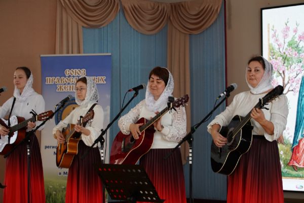 От имени «Союза православных женщин» присутствующих поздравила председатель регионального отделения СПЖ Ольга Торговкина, отметив значительную роль женщин в сохранении православной веры, плодотворную работу женщин на приходах, их активное участие в жизни Церкви.