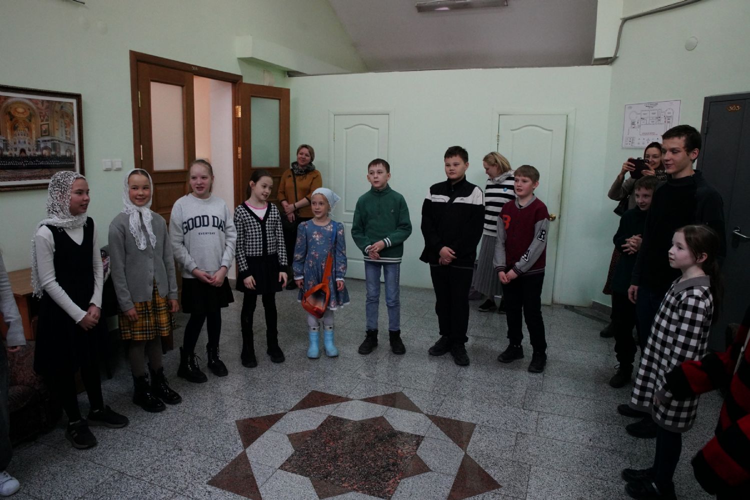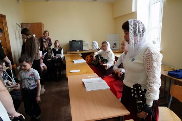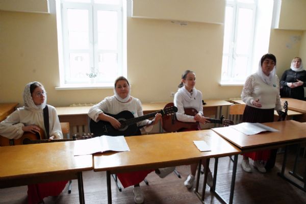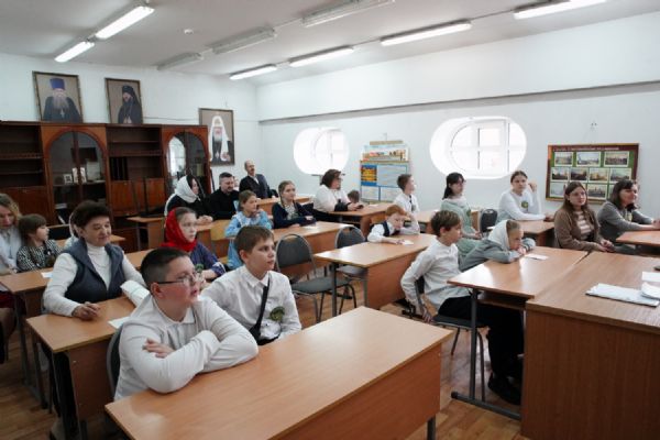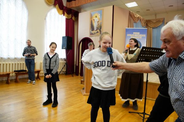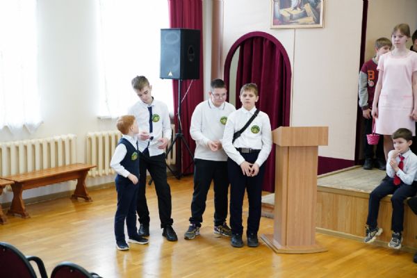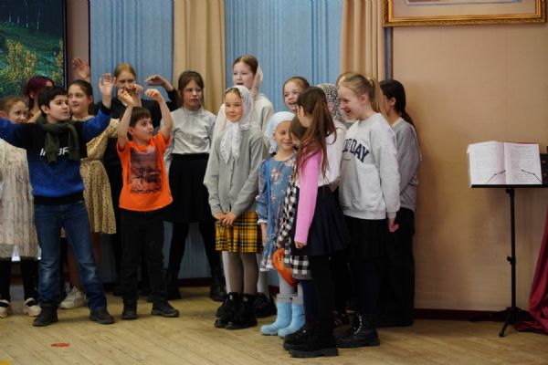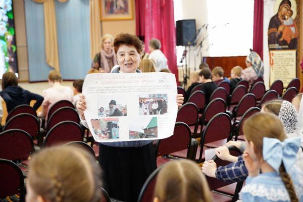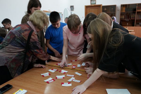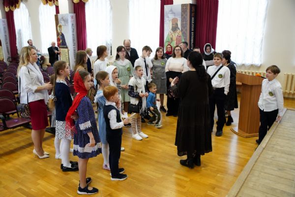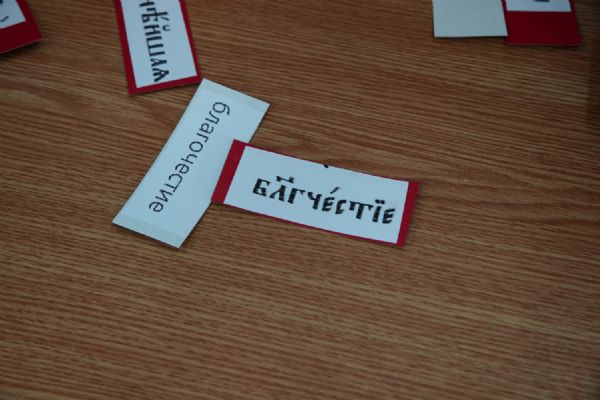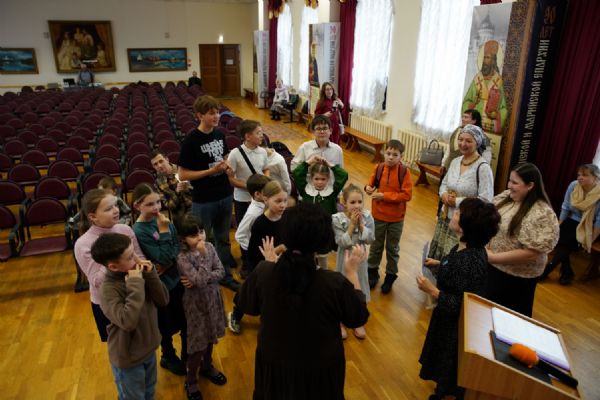 Затем ребятам была предложена квест-игра – на разных станциях им предстояло выполнить интересные задания: «Аз-буки-веди» – работа с карточками церковнославянского языка; «Да-нет» – найти правильный ответ из библейской истории; «Толмачи» – объяснить значение некоторых слов из Священного Писания. Были также станции: игровая, музыкальная, театральная. В завершение был показан импровизированный мини-спектакль «Дорогою добра».
