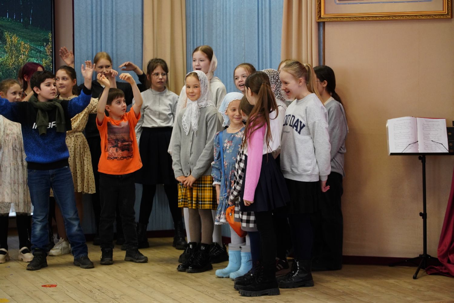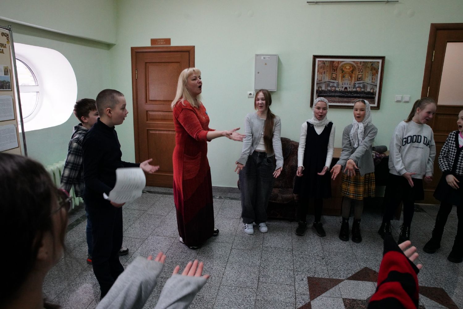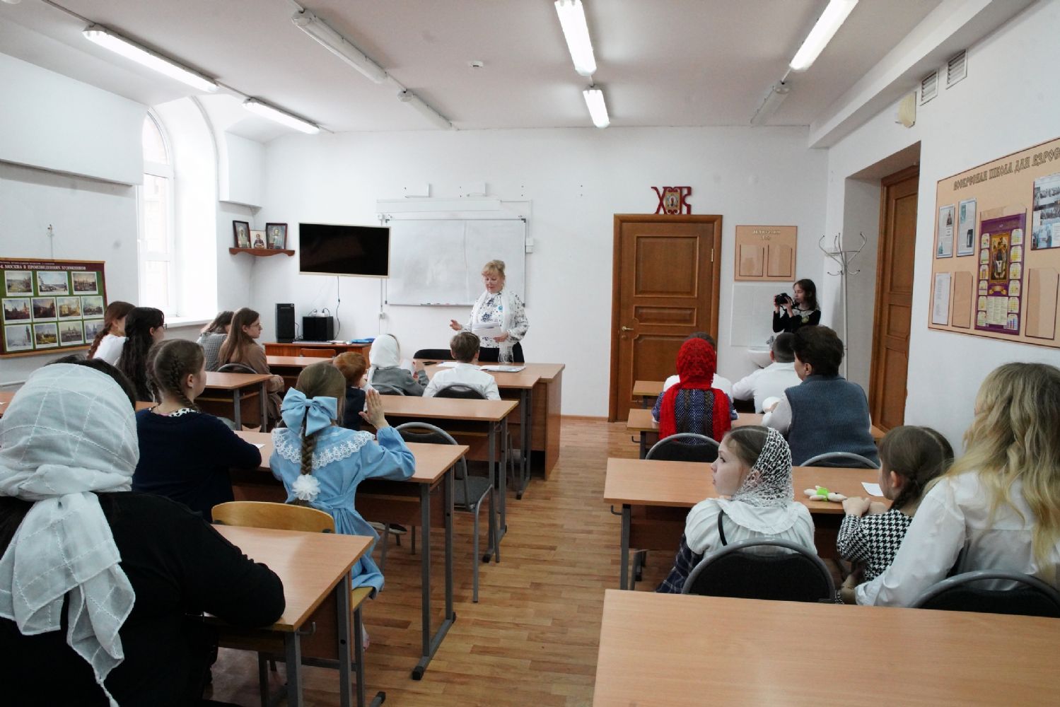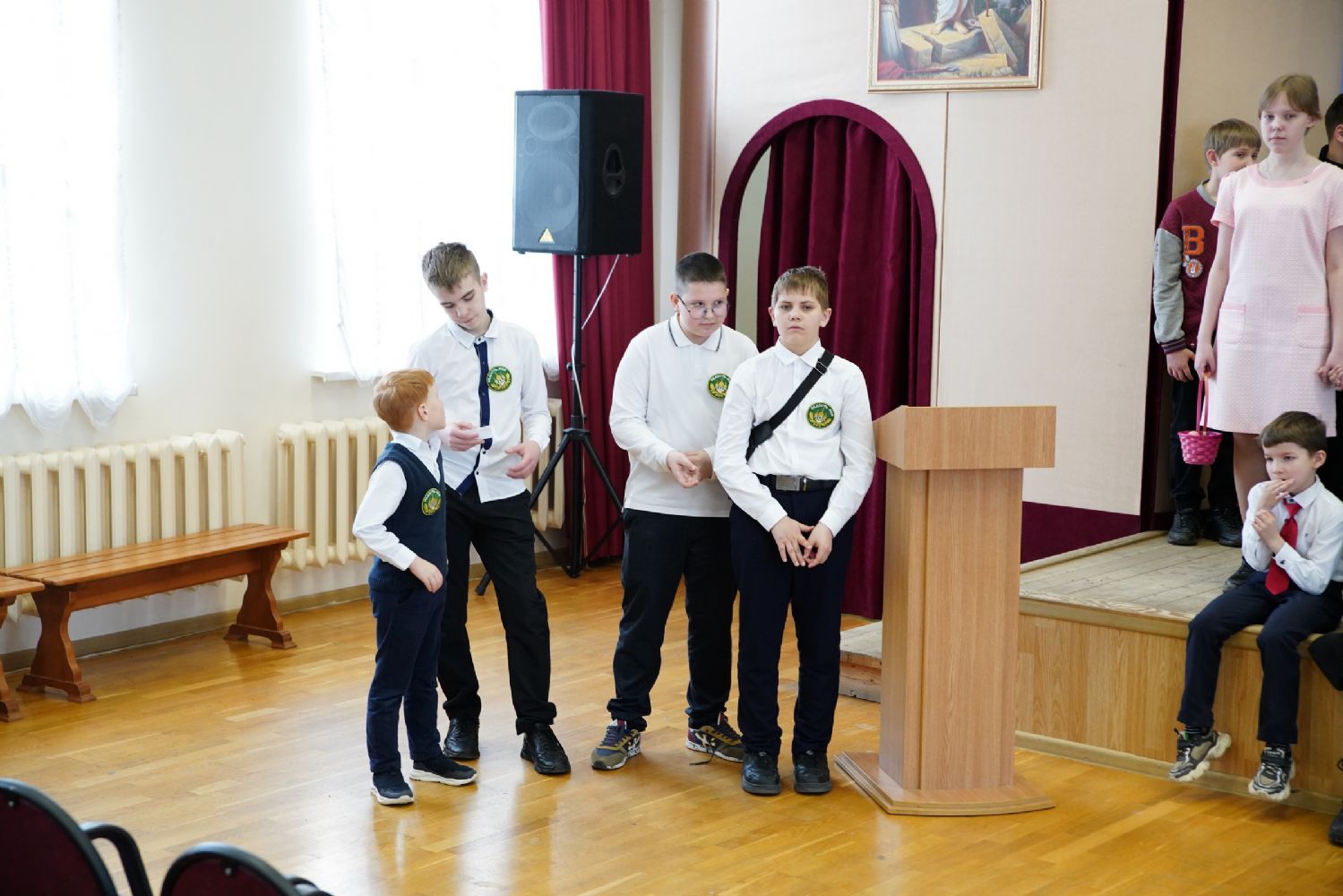 Затем ребятам была предложена квест-игра – на разных станциях им предстояло выполнить интересные задания: «Аз-буки-веди» – работа с карточками церковнославянского языка; «Да-нет» – найти правильный ответ из библейской истории; «Толмачи» – объяснить значение некоторых слов из Священного Писания. Были также станции: игровая, музыкальная, театральная. В завершение был показан импровизированный мини-спектакль «Дорогою добра».
