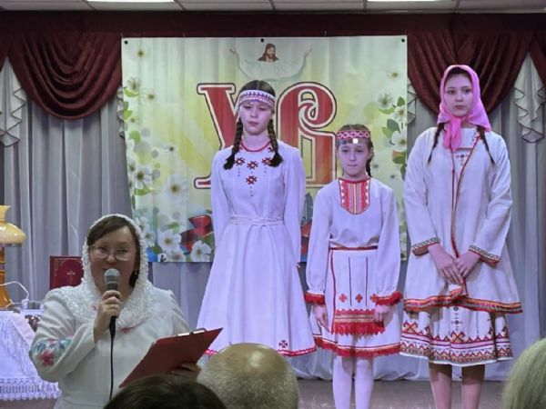 Продолжился праздник прославлением Богородицы («Царице моя Преблагая…) в исполнении приходского ансамбля «Чон кумыл» на марийском и церковнославянском языках, пением степенного антифона «От юности моея...», очень проникновенно сыграли сценку «Забытая Библия» на марийском языке сестры Юлия, Аня и Вера Вараксины, затронули души зрителей марийские песни в исполнении ансамбля «Какшан сем», заслуженной артистки Марий Эл Любови Купсольцевой, православного ансамбля из села Арино Моркинского района, а также воспитанников воскресной школы Богоявленского храма.