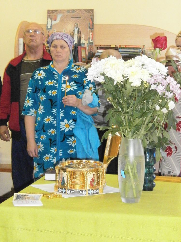 Медперсонал и пациенты в назначенное время терпеливо ожидали прибытия святых мощей, чтобы соборно помолиться и попросить помощи у блаженной. По окончании молебна присутствующие приложились к святыне. Окропив всех святой водой, отец Константин обратился с духовным напутствием к молящимся. Завершая краткую проповедь, батюшка привел в пример отношение к жизни и болезни самой Матронушки и пожелал всем болящим любви, терпения, упования на милость Божию и не забывать за все благодарить Господа.