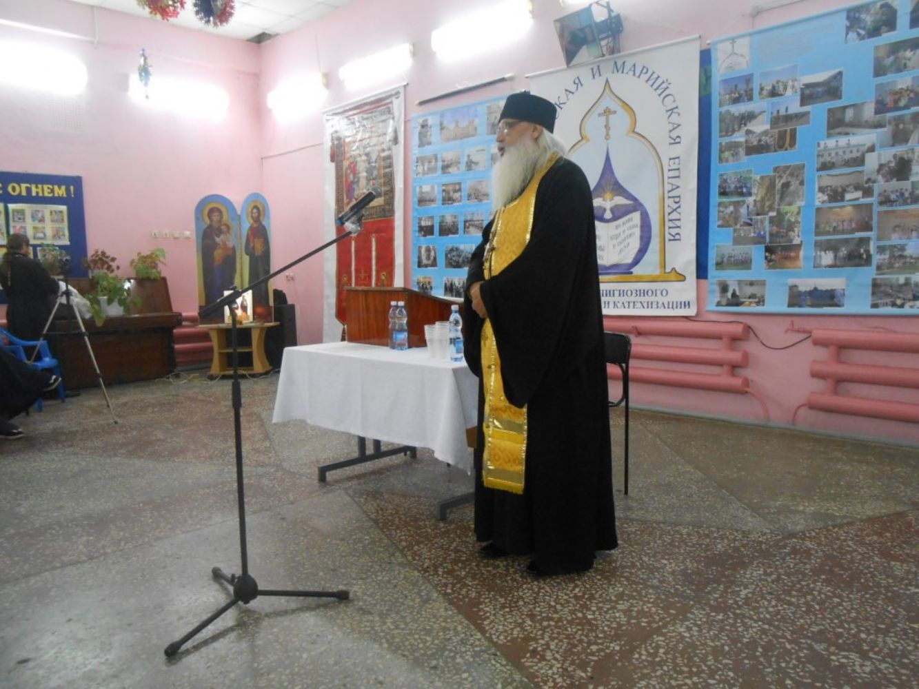 С приветственными словами выступили: протоиерей Вячеслав Ершов, руководитель епархиального отдела религиозного образования и катехизации Йошкар-Олинской и Марийской епархии, Е.Г. Филиппова, председатель Ассоциации православных педагогов РМЭ, руководитель отдела образования г. Волжска, священник Дионисий Красноперов, заместитель руководителя отдела образования и катехизации Нижегородской епархии.