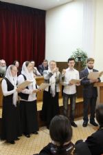 Презентация началась с выступления хора «Благовест», который исполнил тропарь Пасхи на марийском языке. После чего присутствующие имели возможность услышать слова Священного Писания на горномарийском языке.
