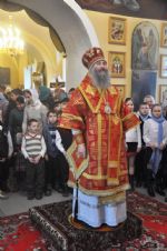 По окончании литургии Владыка возглавил крестный ход вокруг храма. В заключении Архипастырь обратился к собравшимся с проповедью.