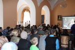 После осмотра выставки гости перешли в «каминный зал». Здесь звучала духовная музыка и были показаны слайды с фотографиями о жизни прихода храма Архангела Михаила. В зале собрались представители администрации района, районного отдела образования, почетные гости, учащиеся 7 – 8 классов Юринской средней школы и прихожане храма.