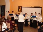После окончания официальной части, вниманию слушателей, был предоставлен концерт духовной музыки. Под руководством регента хора матушки Марины в исполнении хора прозвучали произведения: Артемий Ведель - «Царю Небесный»; «Под Твою милость…»; Павел Крылов - «Кресту Твоему»; Кедров-отец «Отче наш»; стихиры всем святым, в земли Российстей просиявшим. Удивительная акустика каминного зала подчеркивала красоту и величие пения церковного хора.