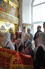 Богослужебные песнопения исполнили хор храма под управлением регента Елены Умрихиной и воспитанники Воскресной школы.