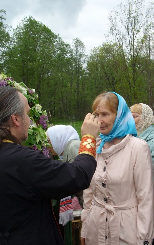 По прибытии на святой источник отец Леонид совершил молебен, помазал собравшихся маслом от мощей святителя Николая и окропил святой водой.
