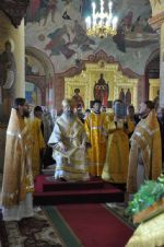 За Божественной литургией Владыке сослужили: секретарь Епархиального управления иеромонах Серафим (Пасанаев), клирики собора: иерей Андрей Норкин, иерей Владимир Камышев, иерей Александр Козлов, иерей Иоанн Кристев, иерей Александр Деревяшкин и иерей Олег Большаков.