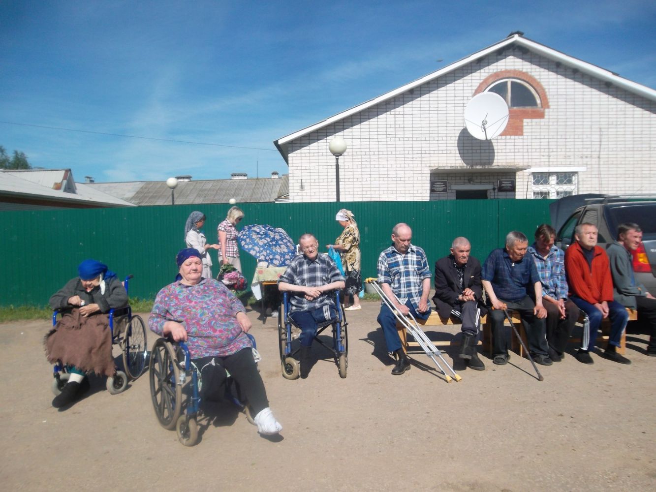 В доме-интернате на данный момент находятся 58 человек, из них 40 – лежащие. Присутствовать на богослужении самостоятельно смогли около 20 человек. Большинство из них исповедовались, а 9 человек причастились Святых Христовых Таин.