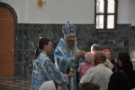 На богослужении Владыка помазал елеем всех верующих, молившихся за богослужением.