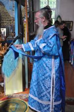 Владыке сослужили: секретарь Епархиального управления иеромонах Серафим (Пасанаев) и клирик Благовещенского собора иерей Артемий Промович.