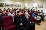 После приветствий протоиерей Евгений Кутырев, настоятель Вознесенского и Троицкого храмов нашего города, поделился своими воспоминаниями о восстановлении храмов и возрождении духовной жизни нашего города. "Я являюсь жителем этого города с рождения, по этому он мне очень дорог. Я всегда ходил в храм Божий, и когда учился в школе тоже. До 19 лет, до тога как меня забрали в армию я посещал Воскресенский храм. А когда вернулся из армии храма уже небыло. Для меня казалось, что город остался без духовного окормления... Это нужно было для того чтобы чинить людям препятствия: если есть храм, значит город живет духовной жизнью, а вот если его нет..."