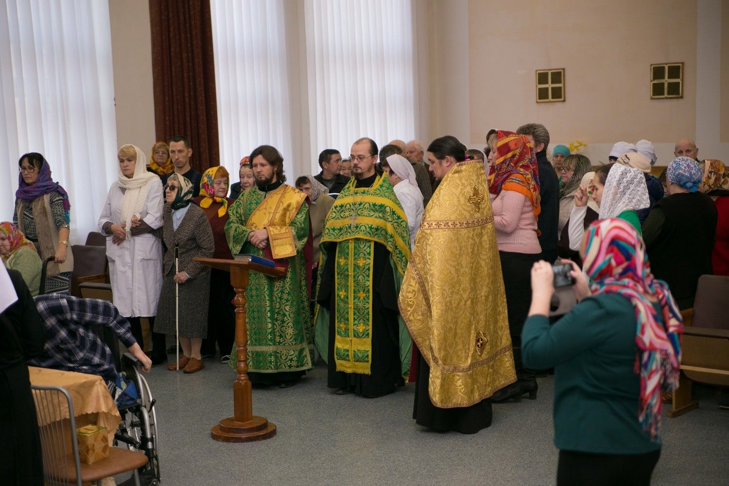 Во время прибытия святыни было совершено молебное пение с акафистом. Богослужение совершили иерей Алексий Михеев, руководитель отдела социального служения и церковной благотворительности Йошкар-Олинской и Марийской епархии, иерей Владимир Камышев, священник, окормляющий дом-интернат, и диакон Александр Мельников. В этом богоугодном деле оказали помощь православные добровольцы Йошкар-Олинской епархии.