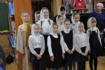 Учащиеся воскресной школы перед Владыкой, духовенством и прихожанами выступили с песнопениями и стихотворениями.