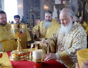 После сугубой ектеньи Святейший Патриарх Кирилл вознес молитву о мире на Украине. Затем были совершены молитвы о упокоении души приснопамятного Патриарха Сергия (Страгородского).