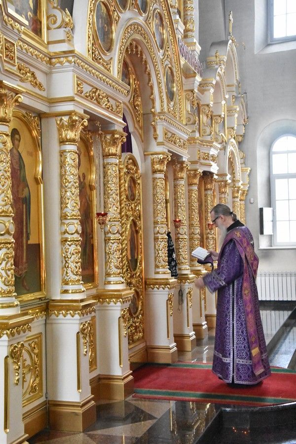 Владыке сослужили секретарь епархиального управления иеромонах Серафим (Пасанаев), клирики Вознесенского собора иерей Александр Козлов, иерей Иоанн Кристев и клирик храма Рождества Пресвятой Богородицы села Семеновка протодиакон Михаил Козловский. Песнопения за богослужением исполнял хор под руководством регента Анны Ярошевич.