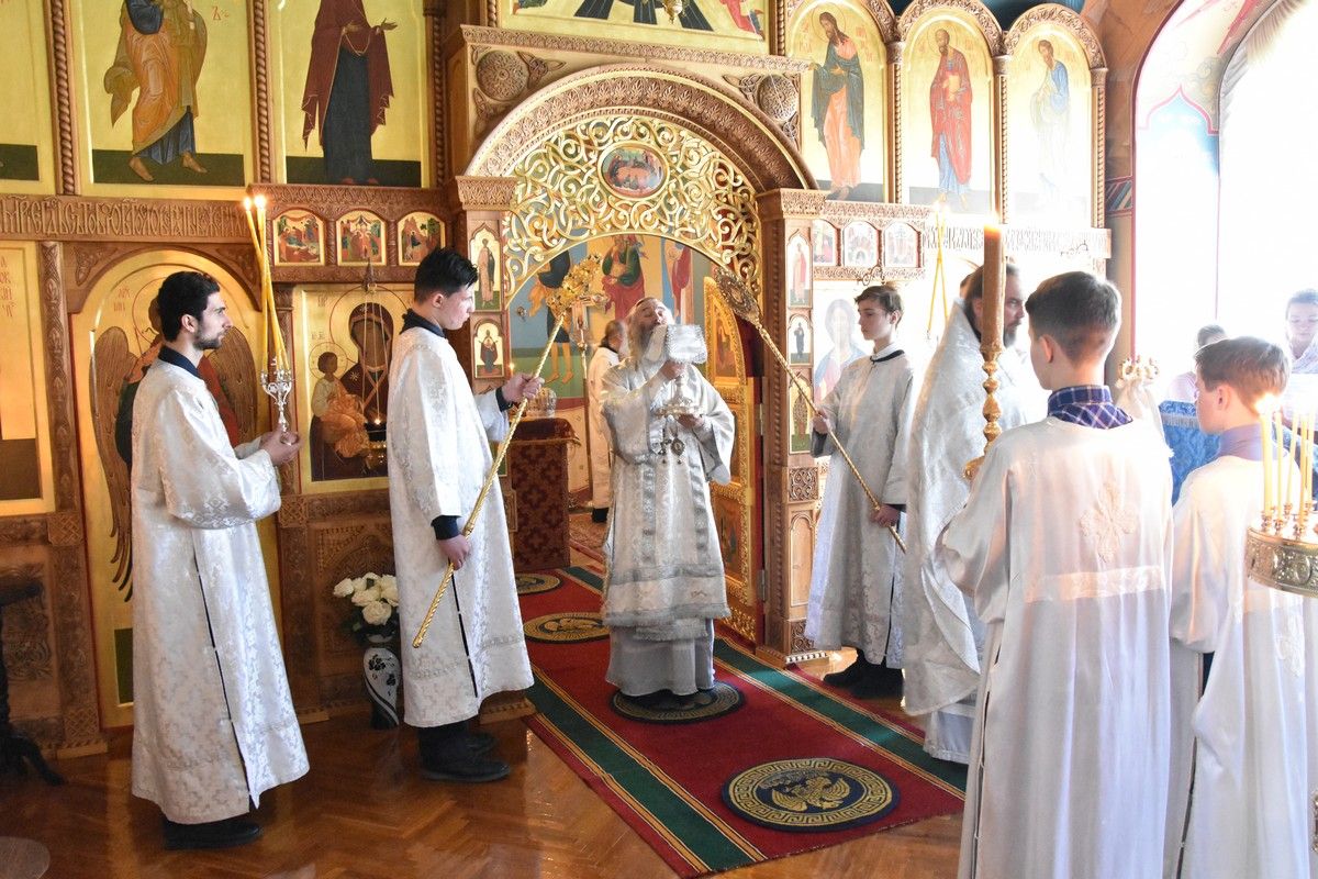 31 марта митрополит Иоанн возглавил Божественную литургию в домовом храме иконы Божией Матери «Троеручица». Владыке сослужили секретарь Епархиального управления Серафим (Пасанаев) и клирик храма Рождества Пресвятой Богородицы села Семеновка протодиакон Михаил Козловский.