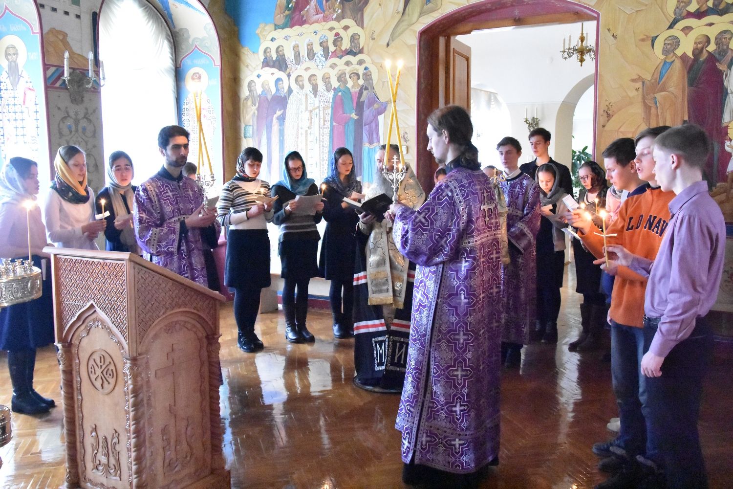 За богослужением Владыка читал в центре храма канон из трех песней посвященный воспоминанию проклятия бесплодной смоковницы, воскрешению праведного Лазаря, победе праведного Иосифа Прекрасного над страстями и пути Господа Иисуса Христа к вольной страсти.