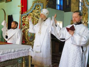 Владыке сослужили клирики собора: благочинный Волжского округа, ключарь собора протоиерей Виталий Михеев, иерей Александр Усков, диакон Иоанн Захаров, диакон Сергий Першаков.