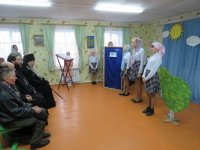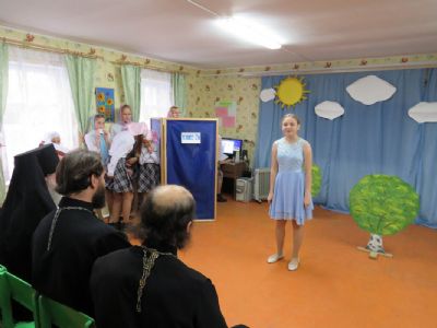 После праздничной трапезы воспитанники воскресной школы «Благо» при Крестовоздвиженском храме с. Кукнур показали архипастырю и всем собравшимся гостям представление о детстве преподобного Сергия и помощи, получаемой по молитвам к этомусвятому.