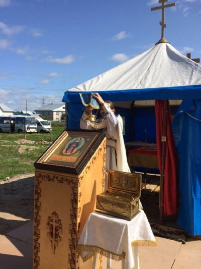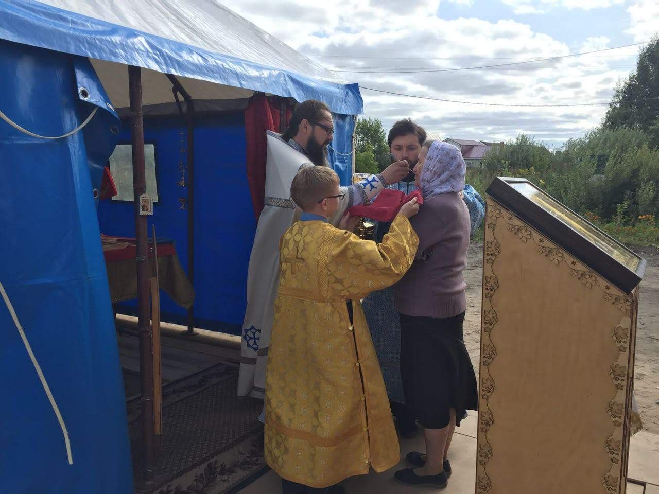 Богослужения были совершены в переносном храме-палатке. Богослужения возглавил священник Дмитрий Дьяков, окормляющий этот приход. Сослужил ему клирик храма Рождества Христова г. Йошкар-Ола диакон Артемий Бобоч.