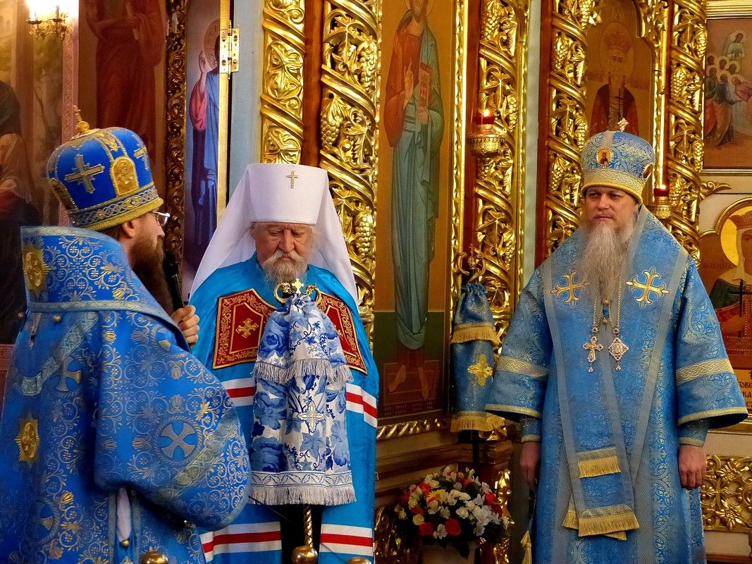 На сугубой ектении были произнесены особые прошения "о единстве Святого Православия", по сугубой ектении владыка Варнава совершил молитву о мире и преодолении междоусобной брани на Украине.