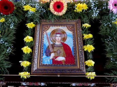 По окончании Литургии был совершен крестный ход вокруг храма с молебным пением Архистратигу Божию Михаилу и всем Небесным Силам.
