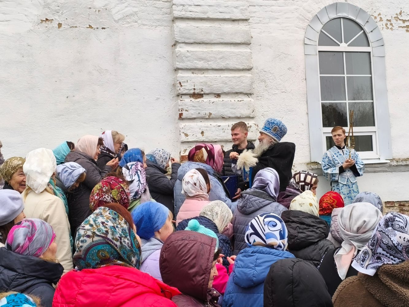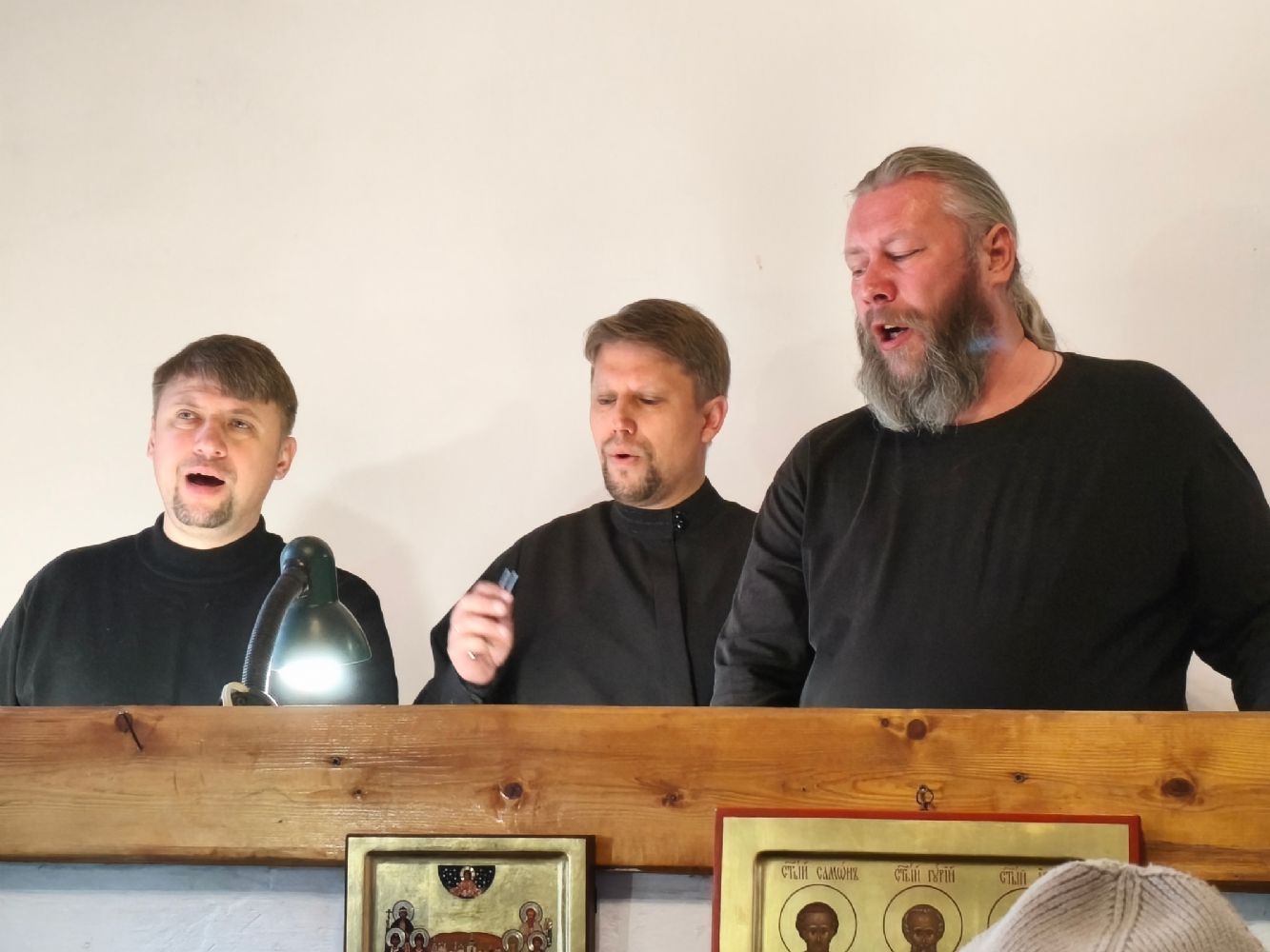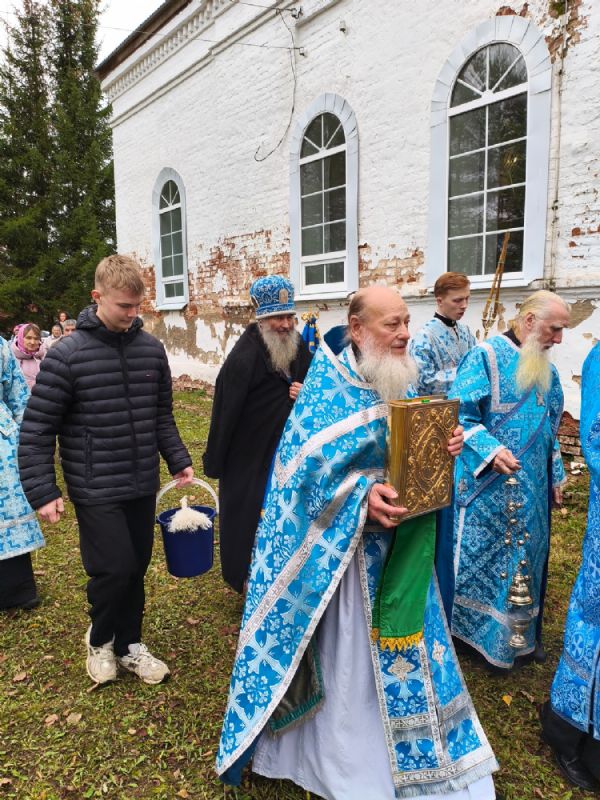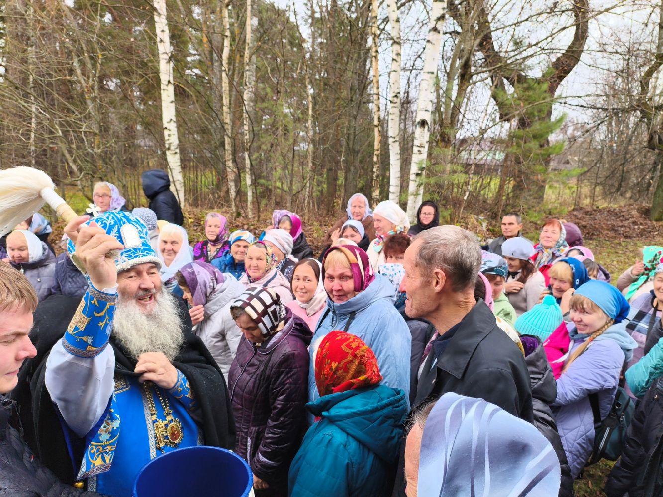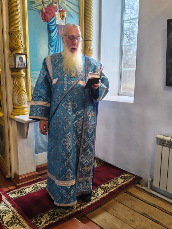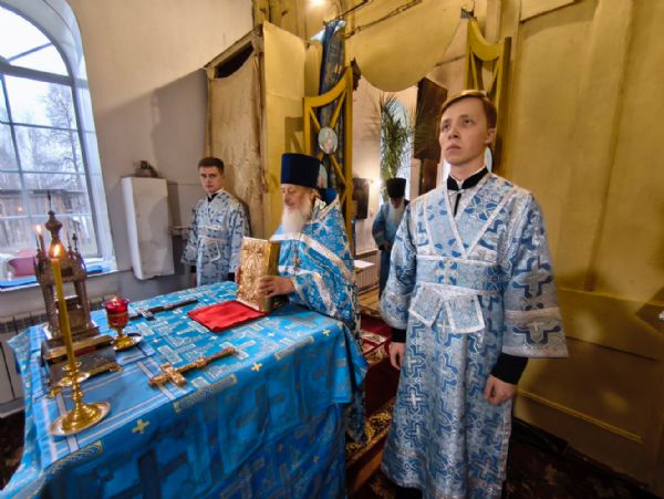 Владыке сослужили настоятель Покровского храма с. Упша протоиерей Михаил Нехорошков, настоятель Богоявленского храма с. Великополье иерей Олег Михайлов и протодиакон Михаил Козловский. Песнопения исполнял мужской хор Сретенского храма с. Кучка.