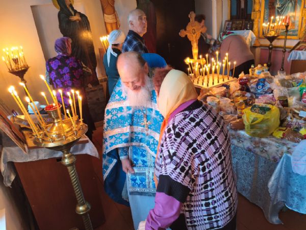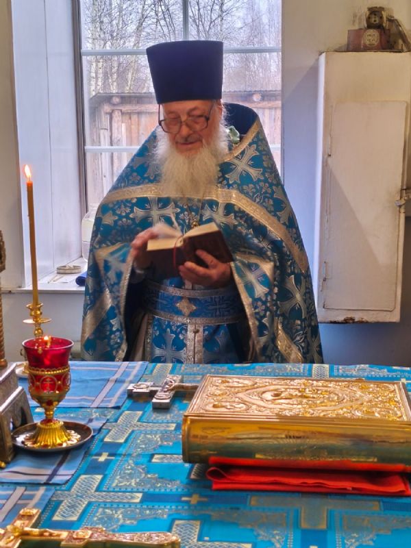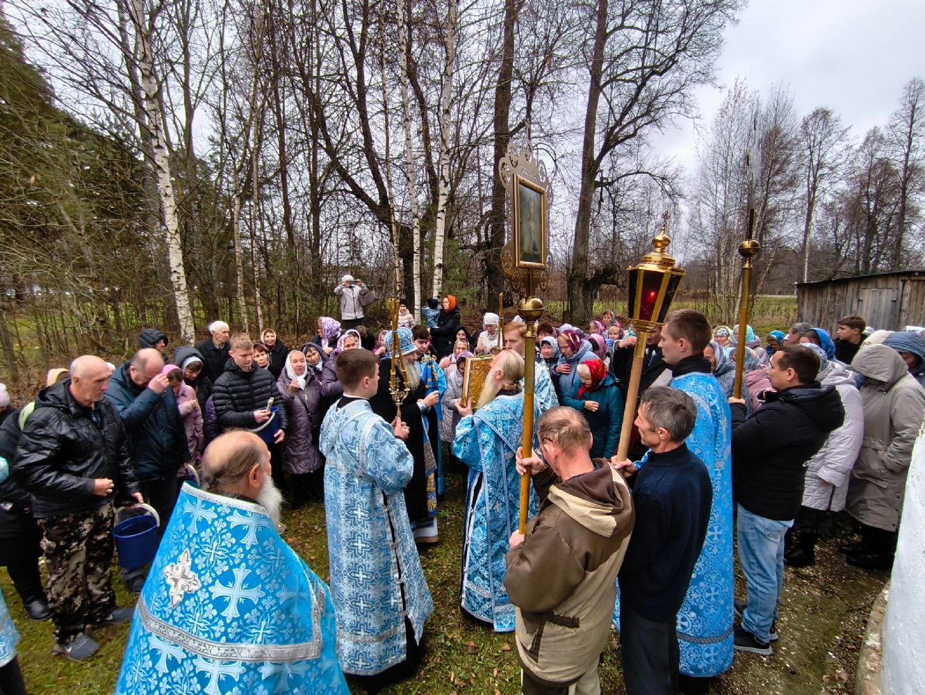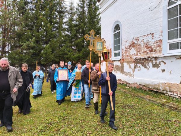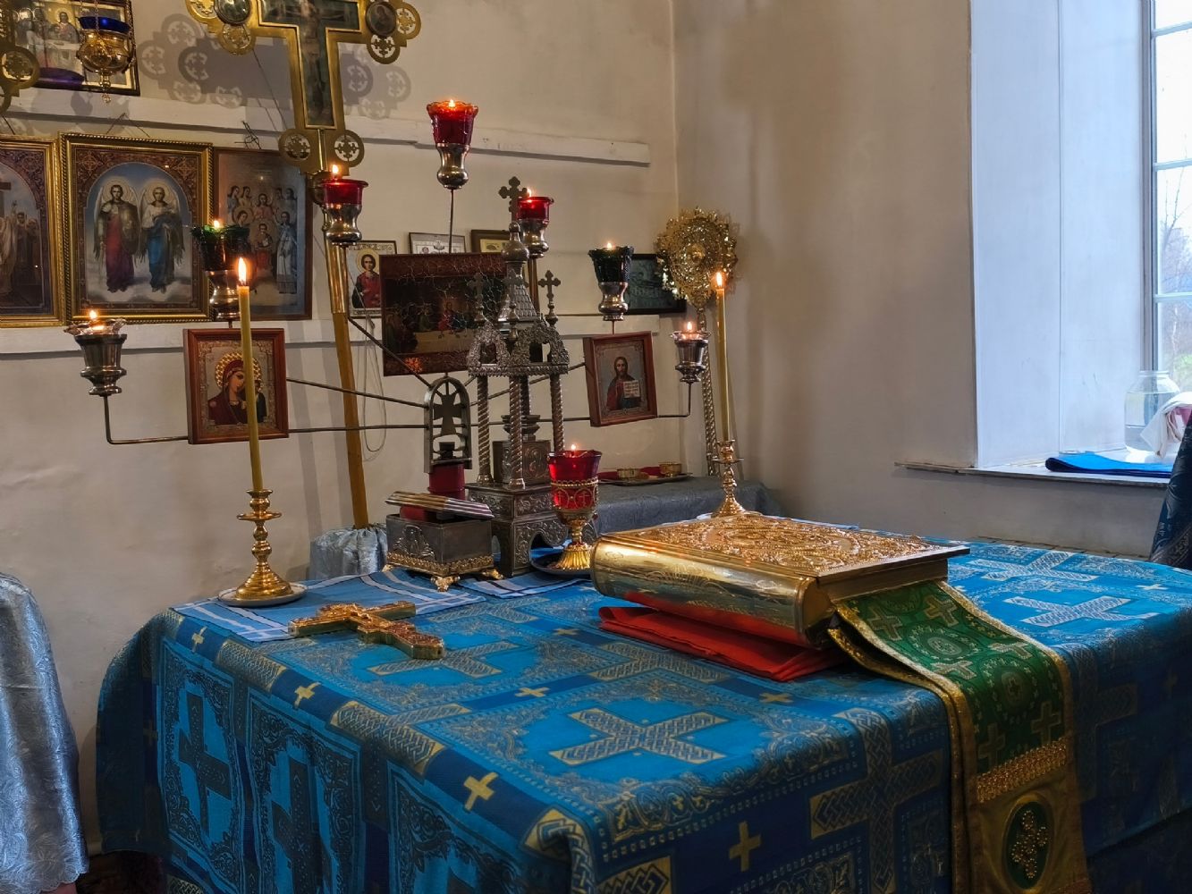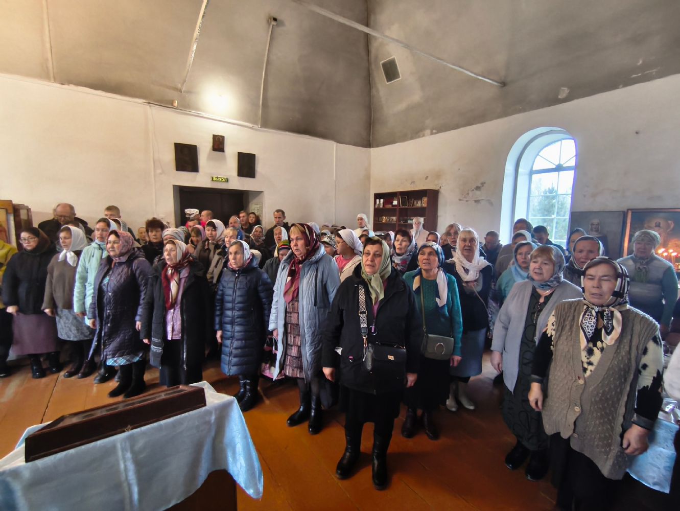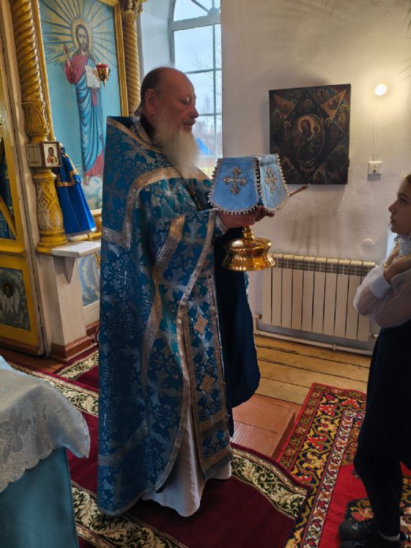 Владыке сослужили настоятель Покровского храма с. Упша протоиерей Михаил Нехорошков, настоятель Богоявленского храма с. Великополье иерей Олег Михайлов и протодиакон Михаил Козловский. Песнопения исполнял мужской хор Сретенского храма с. Кучка.