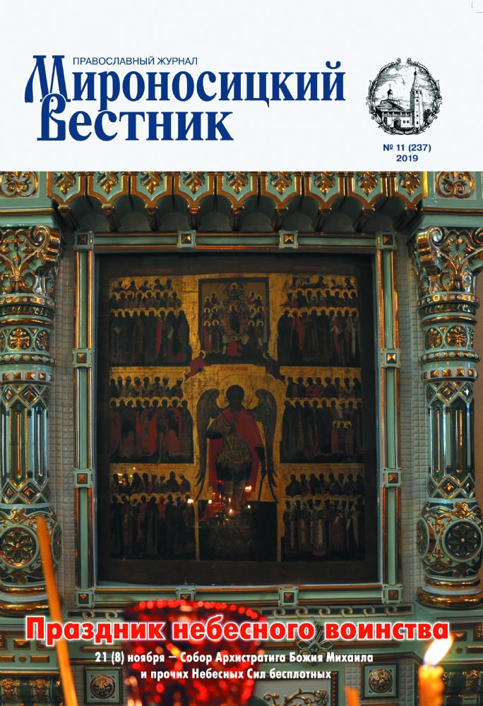 Рубрика «Праздник» рассказывает об установленной в начале IV века традиции празднования Собора Архистратига Божия Михаила и прочих Небесных Сил бесплотных, о девяти Ангельских чинах и их православном почитании. Священномученик Фаддей (Успенский) в слове на день Святого Архистратига Михаила подчеркивает важность обращения с молитвами к Ангелам Божиим, которые непрестанно служат нашему спасению. Молитвенным общением с ними наш дух облегчается от плотских страстей, влечется на высоту воздушную – чтобы удержаться там с помощью наших Небесных помощников и хранителей.