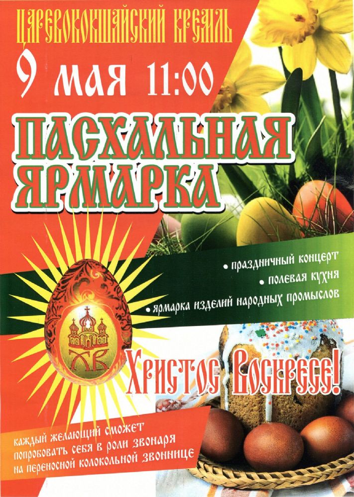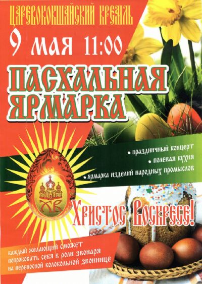 9 мая, на Фомину Неделю, в Йошкар-Оле на территории Царевококшайского кремля состоится ставшая уже традиционной епархиальная Пасхальная ярмарка.