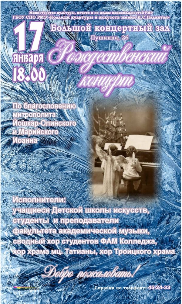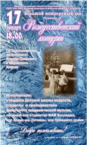 17 января в 18 часов в колледже культуры и искусств им. И.С. Палантая г. Йошкар-Олы состоится традиционный Рождественский концерт.