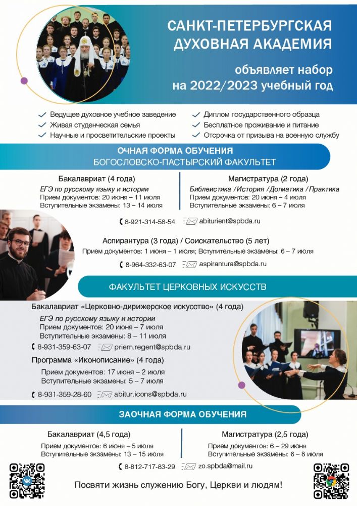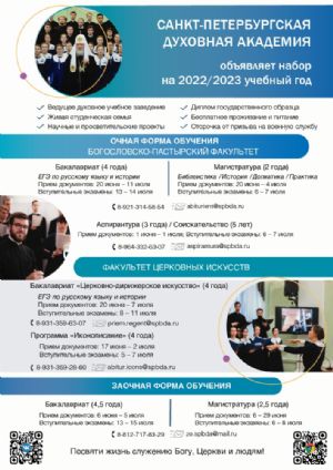 Санкт-Петербургская Духовная академия объявляет набор на 2022-23 учебный год 2604