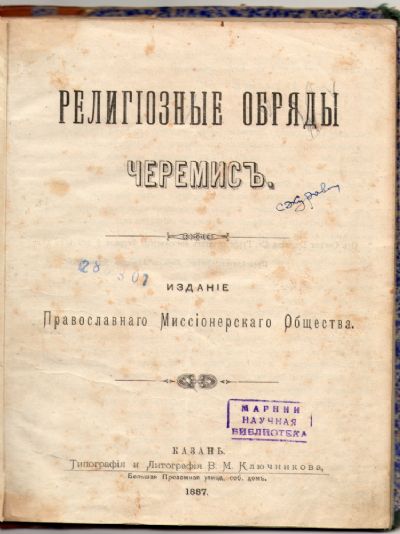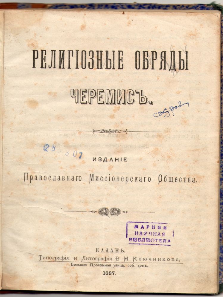 Также отец Гавриил написал книгу «Религиозные обряды» черемис» (1887), которая получила высокую оценку профессора Казанского университета И.Н. Смирнова – уроженца с. Арино Моркинской волости Царевококшайского уезда, автора известной книги «Черемисы» (Казань, 1889). По признанию самого автора, работа составлена «главным образом для православного духовенства, трудящегося в черемисских приходах с целью просвещения этого народа светом Христова учения».