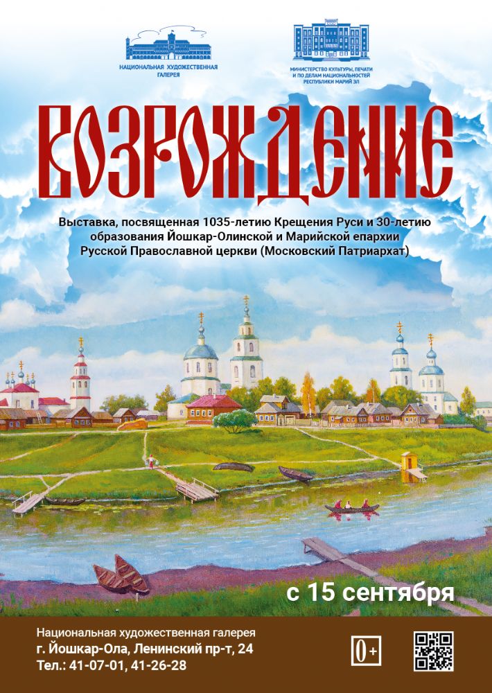 15 сентября в Национальной художественной галерее открывается выставка «Возрождение». Приурочена она к 1035-летию Крещения Руси и 30-летию основания Йошкар-Олинской и Марийской епархии Русской Православной церкви.