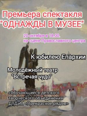 Молодежная театральная студия "Встречая чудо" гимназии им. Сергия Радонежского приглашает на премьеру спектакля "Однажды в музее", посвященного юбилею епархии.