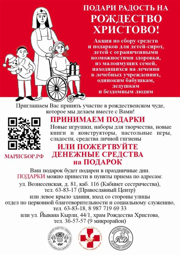 Социальный отдел Йошкар-Олинской епархии, Сестричество милосердия во имя преподобномученицы Великой княгини Елисаветы и Православные добровольцы проводят традиционную акцию «Подари радость на Рождество Христово».