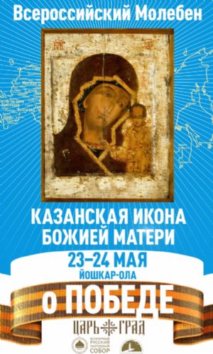 Организатором Всероссийского молебна о Победе – общероссийского принесения Казанской иконы Божией Матери – по благословению Святейшего Патриарха Кирилла выступает Комиссия Русской Православной Церкви по развитию паломничества и принесению святынь при содействии руководства регионов России и организационной поддержке Всемирного Русского Народного Собора и Фонда Царьград.